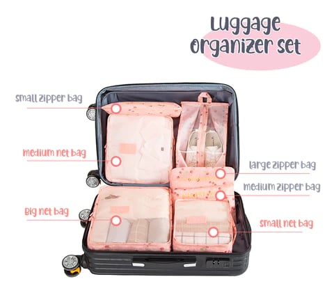 Our organizer set is specifically designed to fully utilize your luggage space while also fit into standard luggage compliant.